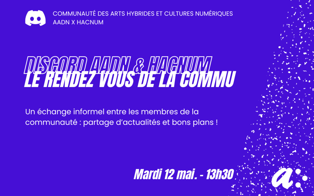 La volonté de l’AADN et du réseau HACNUM est de créer un espace d’échanges pour les acteur•rices des arts numériques et cultures hybrides, à travers différents salons de discussion et des événements sur la plateforme de discussion en ligne Discord.